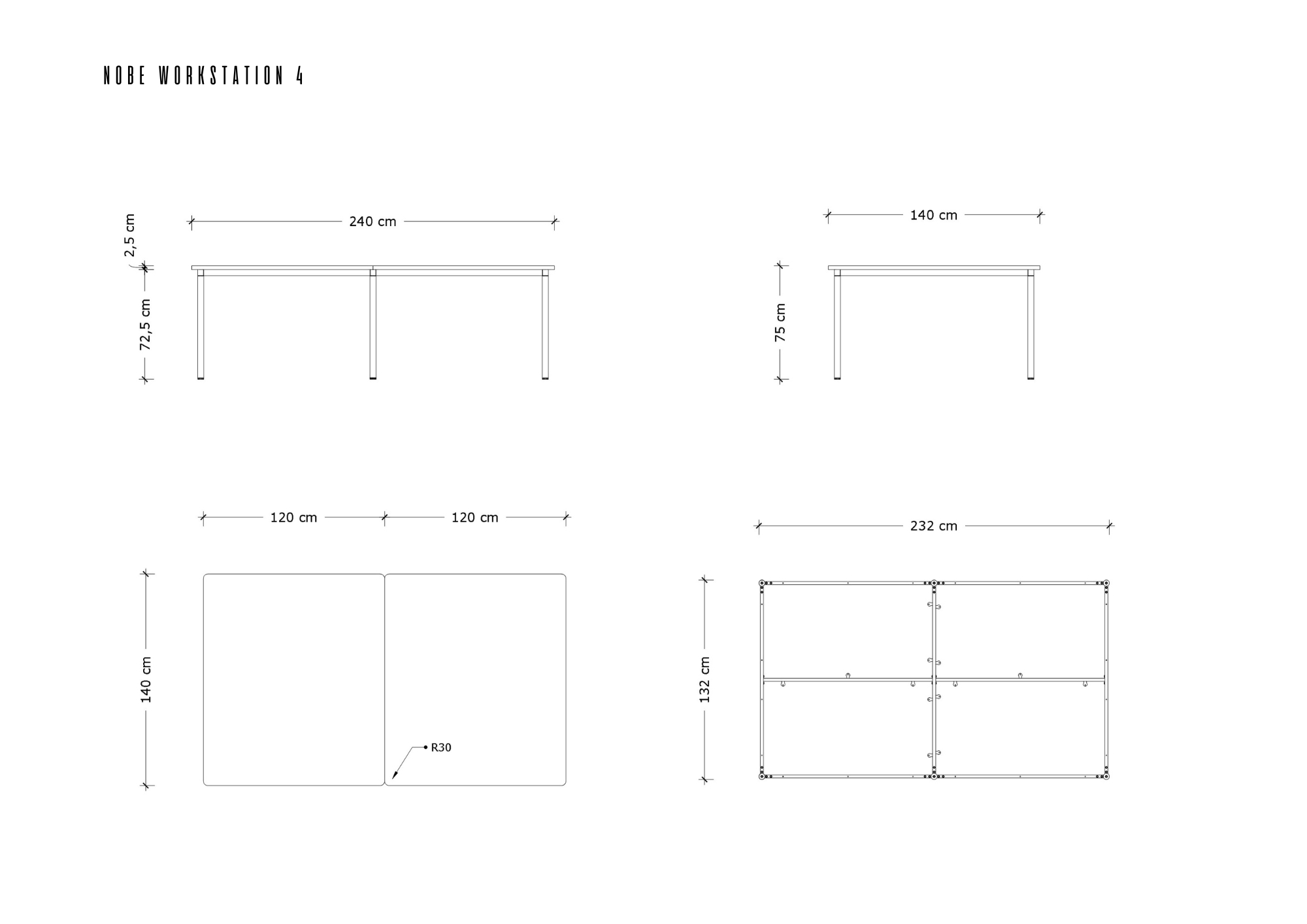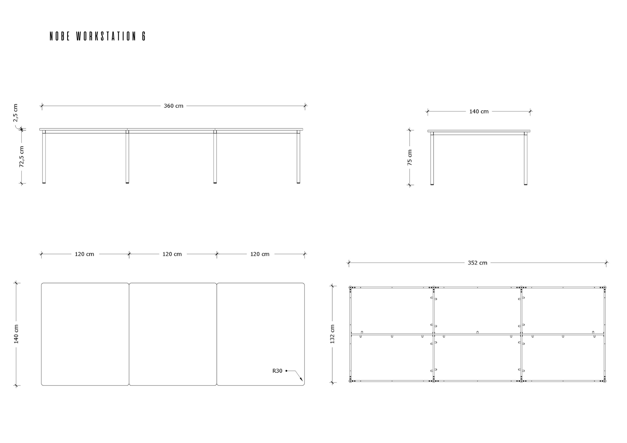 - Maximale Belastung Nobe Manager Desk 150 kg, Nobe Workstation 80 kg pro Arbeitsplatz