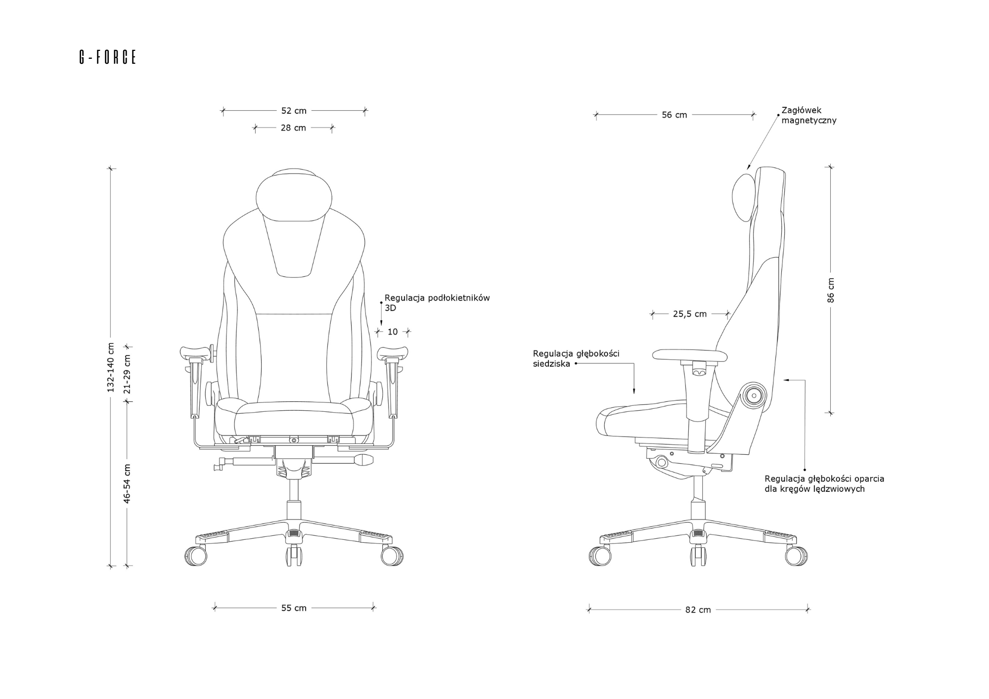- Ajuste independiente del ángulo de inclinación del respaldo