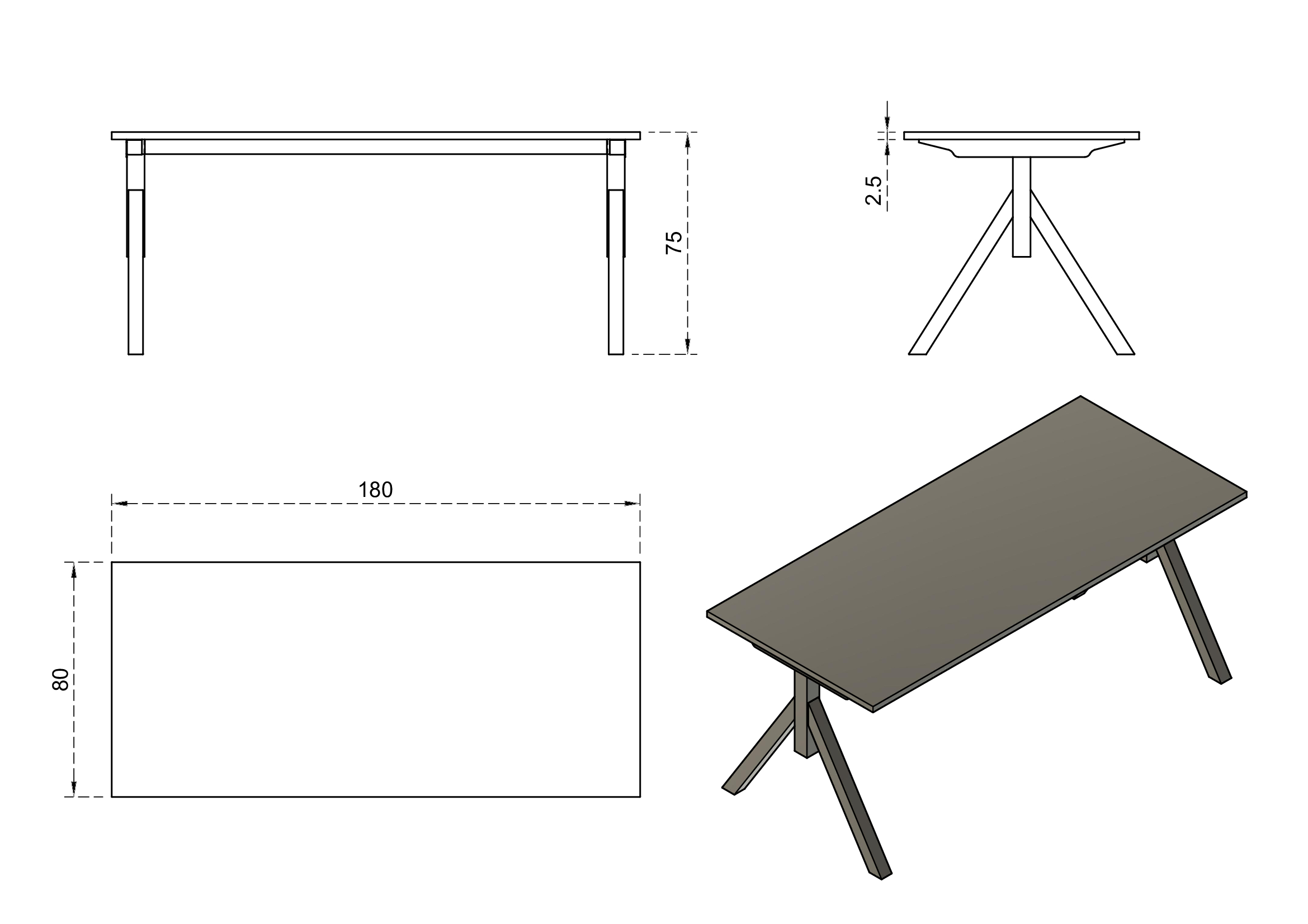 - Borde de plástico ABS del mismo color que la superficie de la mesa